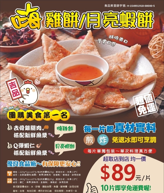 二、 合作社代訂嗨雞餅&月亮蝦餅,每片只要89元。有要訂購的同仁可到合作社辦公室內訂購並繳費。