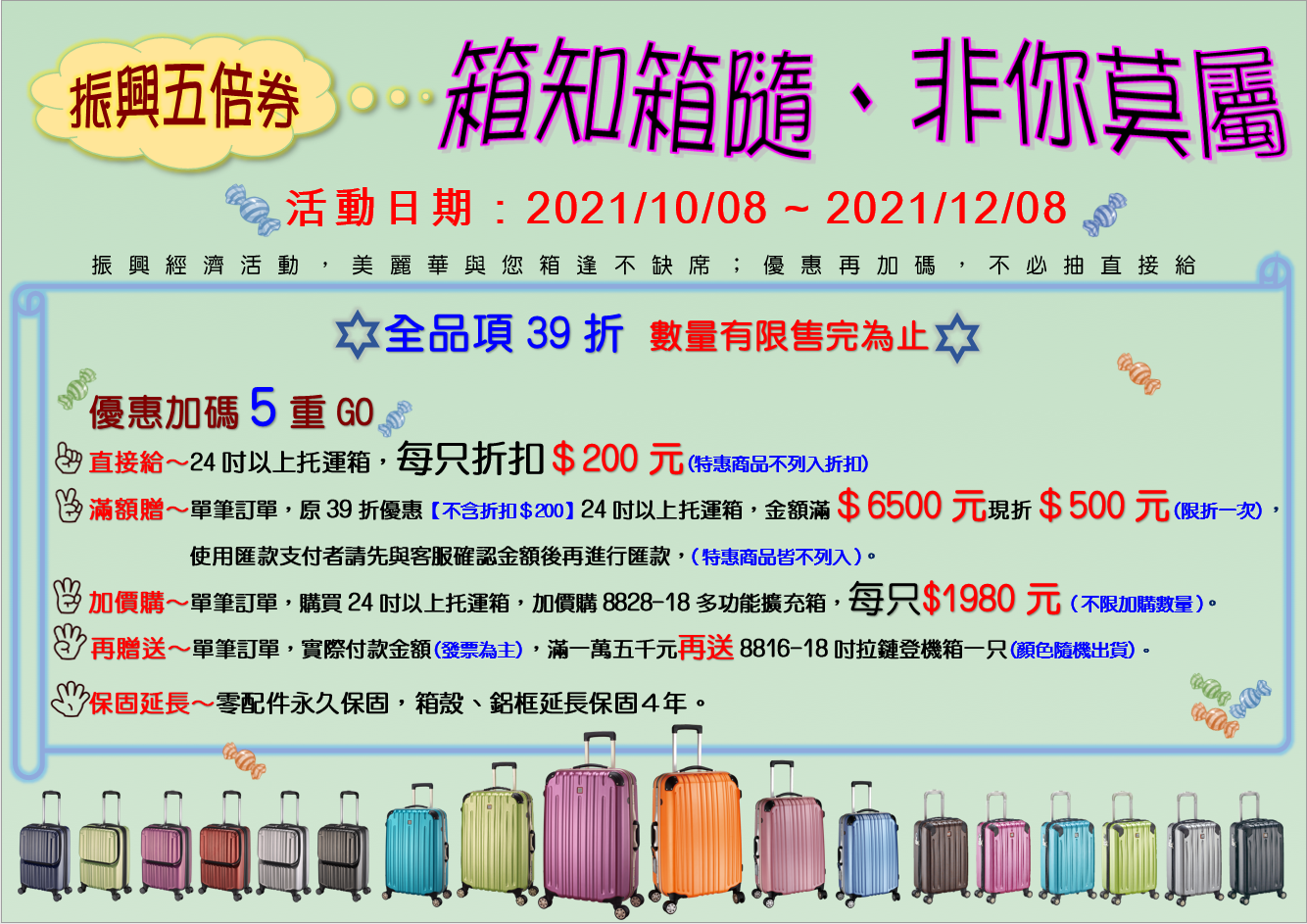 一、美麗華皮件振興五倍券專案活動!110年10月8日至110年12月8日止,同仁如欲訂購請自行下載訂單表格。