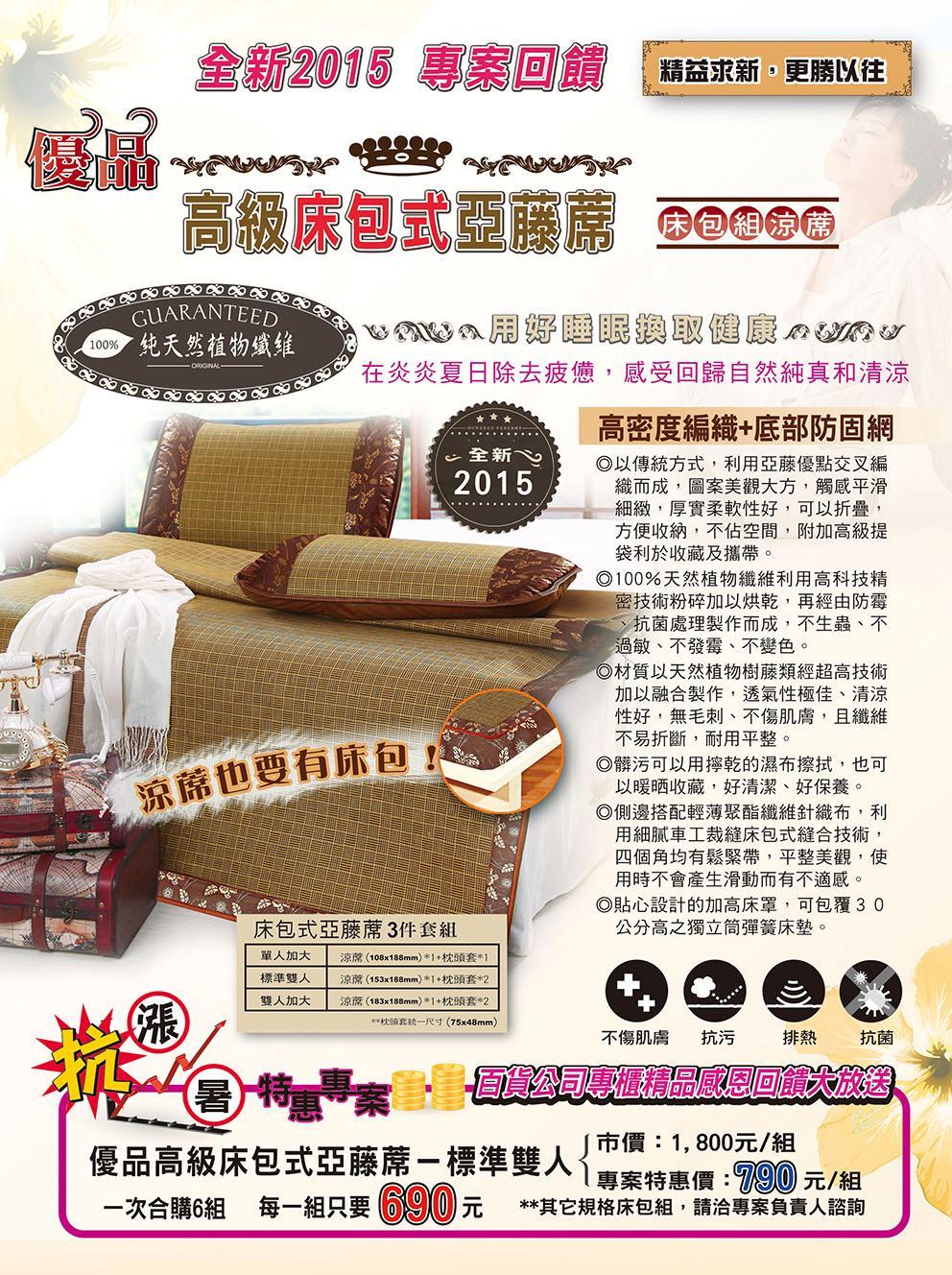 合作社代訂優品床包式亞藤涼蓆(加贈信封式涼枕頭套),如有要