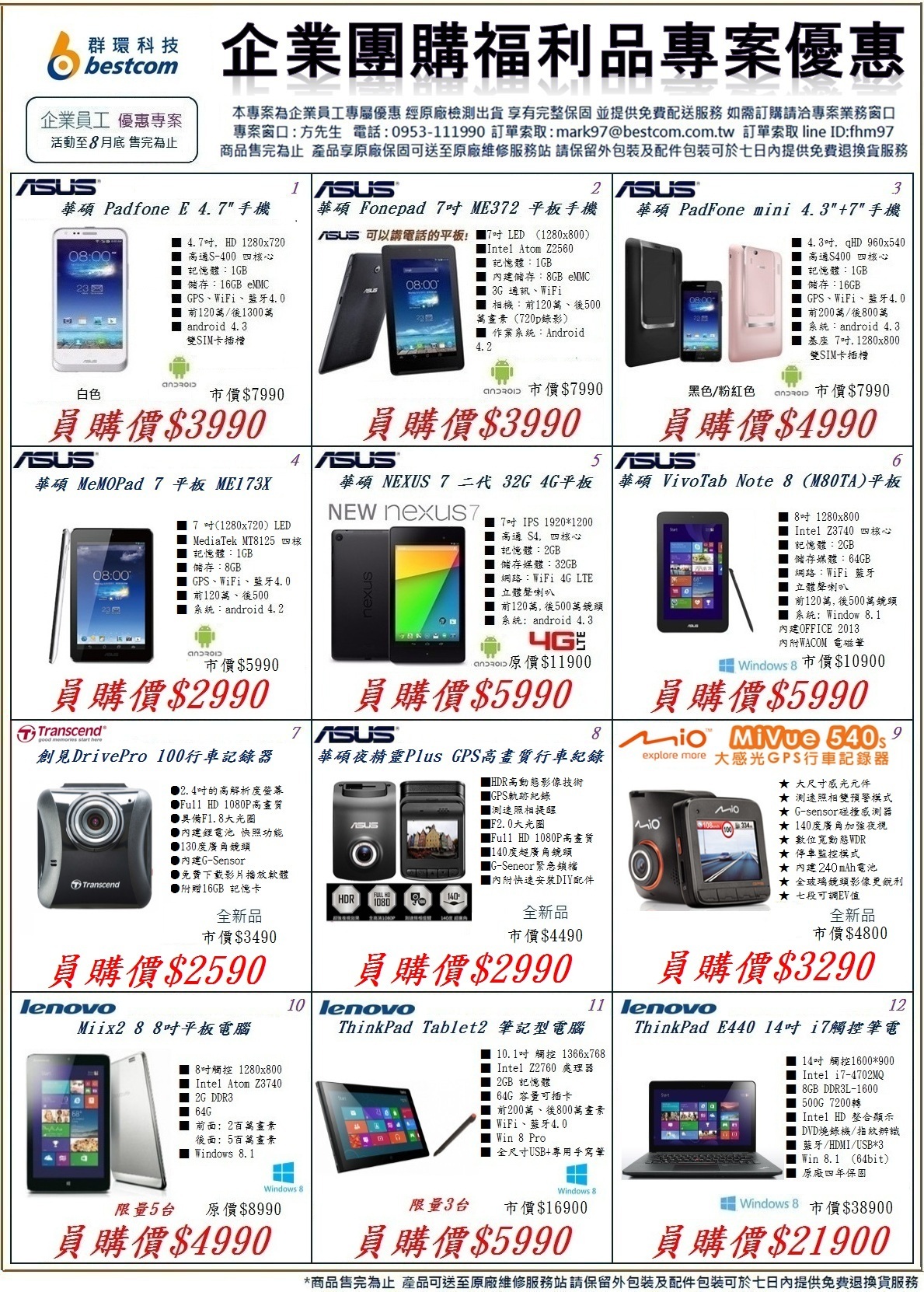 1、本合作社轉登群環科技企業團購專案優惠相關資料請同仁參閱!(8月份提供限量優惠商品如附件/8月專案訂購即送電動刮鬍刀或USB涼風扇)