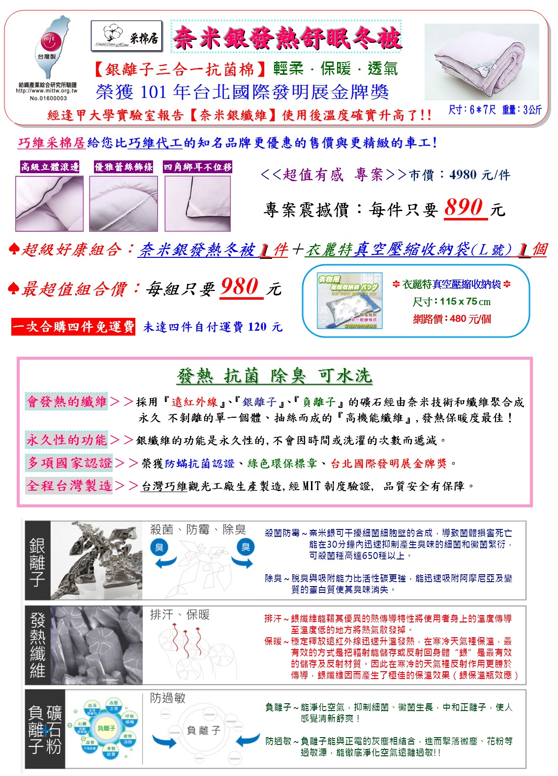 合作社代訂MIT采棉居超輕柔天絲冬被、奈米銀發熱冬被、天絲獨立筒釋壓抗菌枕系列如有要訂購之同仁請依