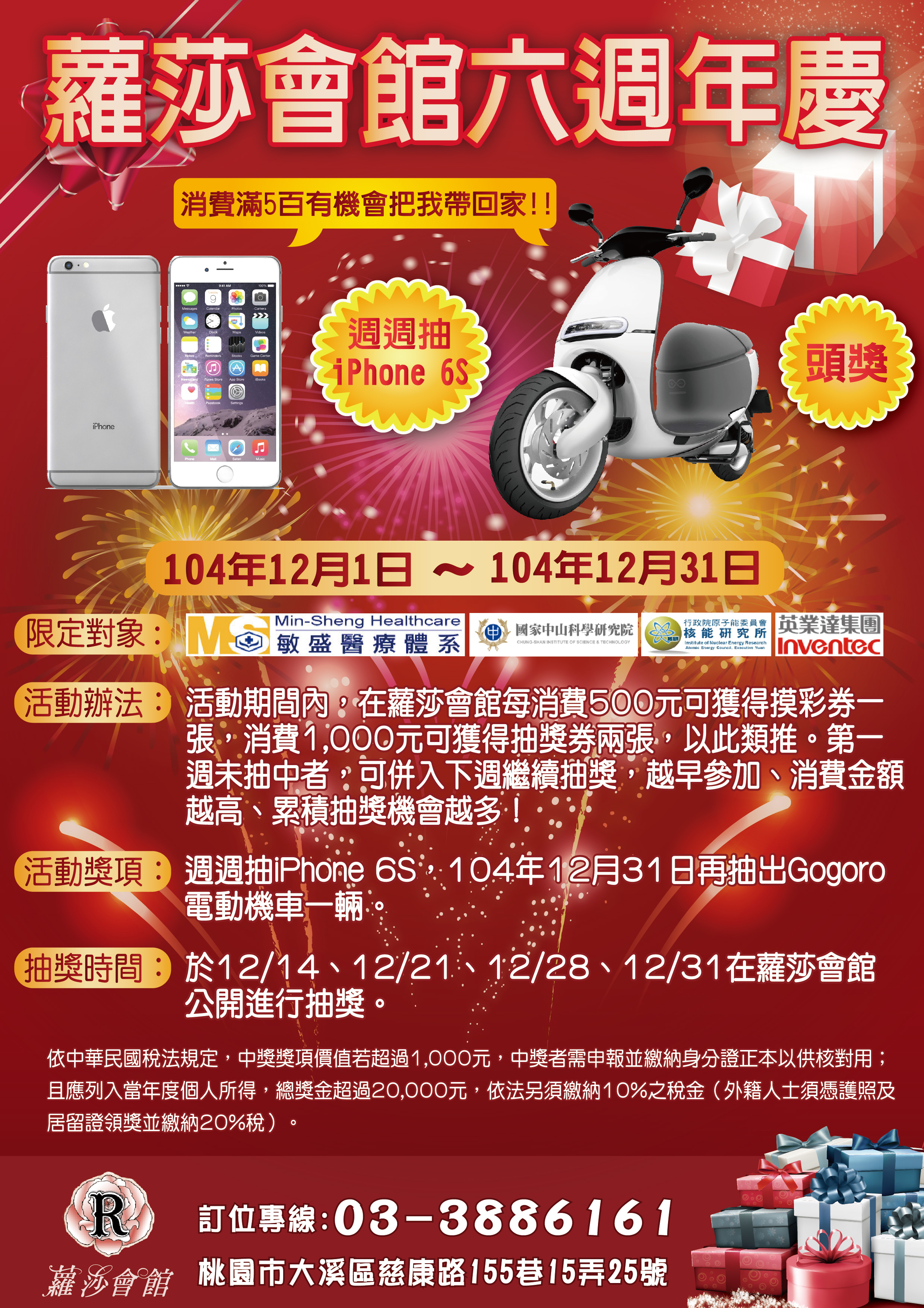 本合作社特約商-蘿莎會館歡慶六週年,特別舉辦消費回饋抽大獎活動訊息請同仁參閱。