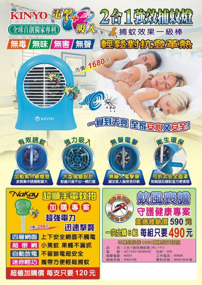 合作社代訂KINYO二合一強效捕蚊燈(可加購電池式捕蚊拍),如有要訂購之同仁請依附表格式填妥後至合作社登記一併繳款。訂購日期至5月10日下午4:30止。