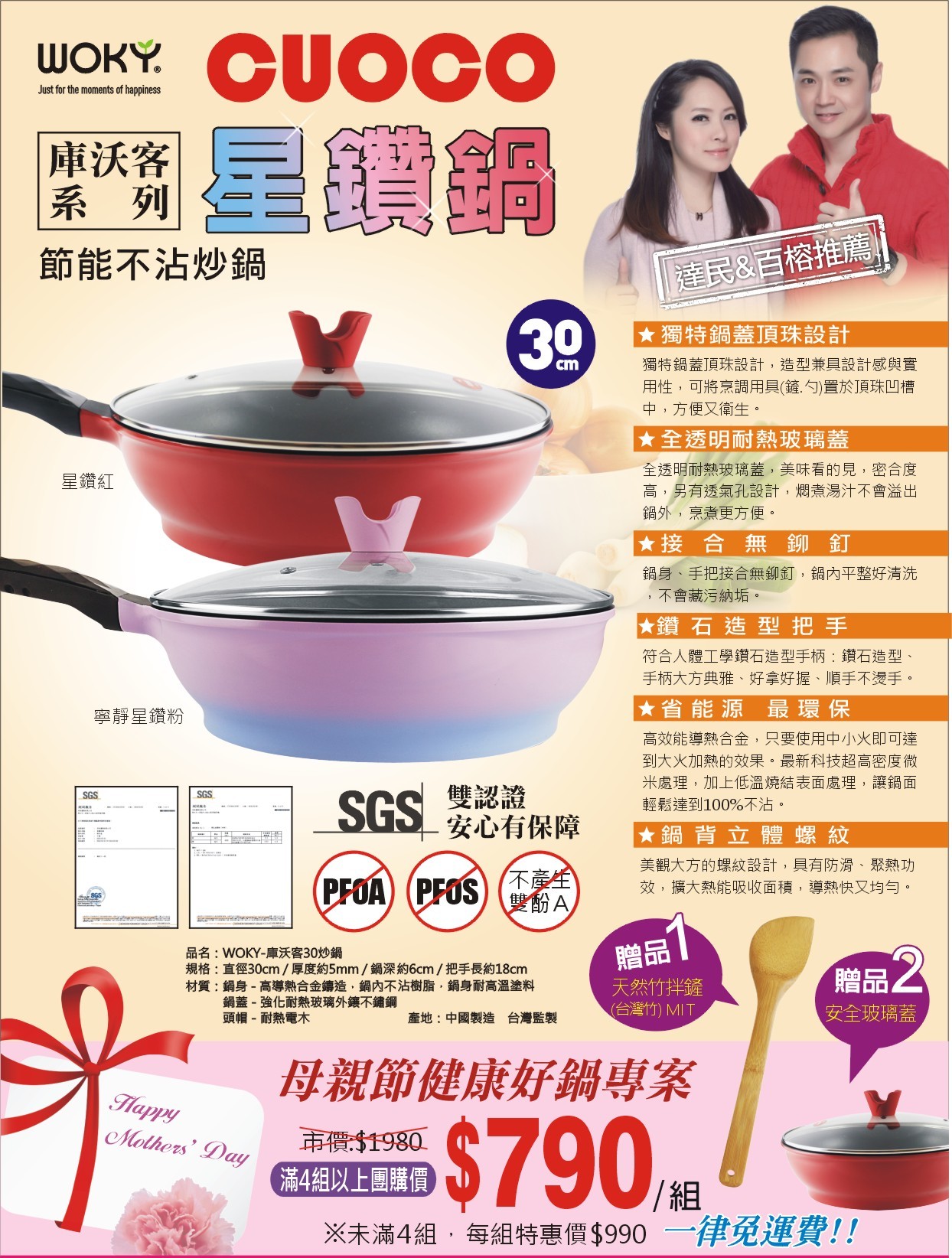 合作社代訂WOKY庫沃客系列星鑚鍋(節能不沾炒鍋),如有要訂購之同仁請依附表格式填妥後至合作社登記一併繳款。數量有限售完為止~