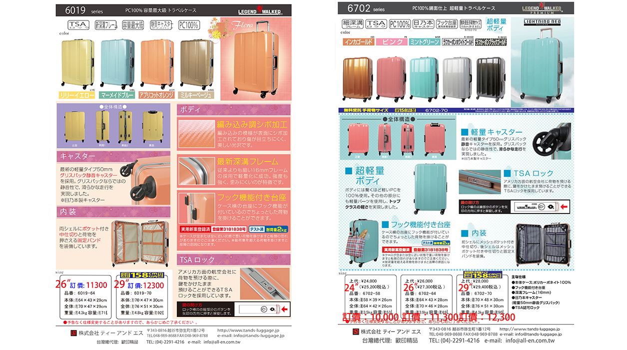 發佈者: 何梅新1.本社特約商歐印興業有限公司專案活動!即日起至104年02月28日止。同仁如欲訂購請自行下載訂單表格。 歐印興業有限公司 All-en Boutique Enterprise Co.,Ltd. 日本LEGEND WALKER台灣代理商 北區業務部長 羅秀玉 (電話:0939-793-911) 專賣店:406 台中市北屯區敦化路一段565號 TEL:04-2291-4216 FAX:04-2292-2221 www.all-en.com.tw 臉書:歐印精品