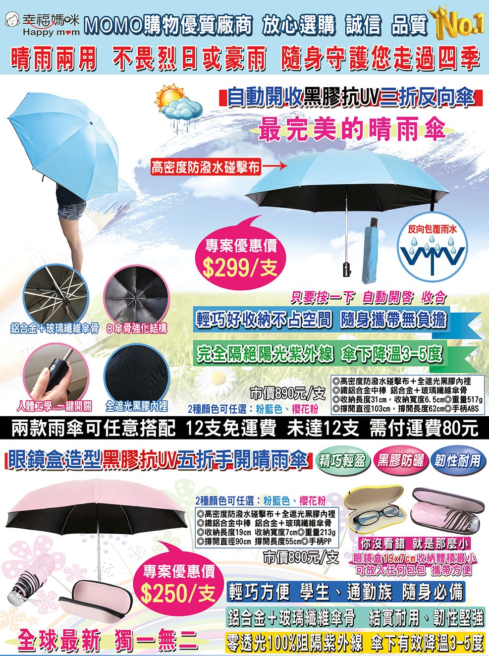合作社代訂自動開收黑膠抗UV三折反向傘,如有要訂購之同仁請依附表格式填妥後至合作社登記一併繳款。