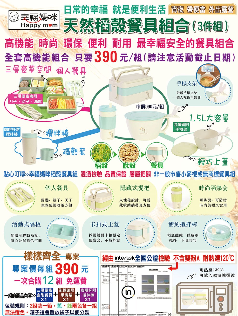 合作社代訂天然稻穀餐具組合(3件組),如有要訂購之同仁請依附表格式填妥後至合作社登記一併繳款。訂購日期至