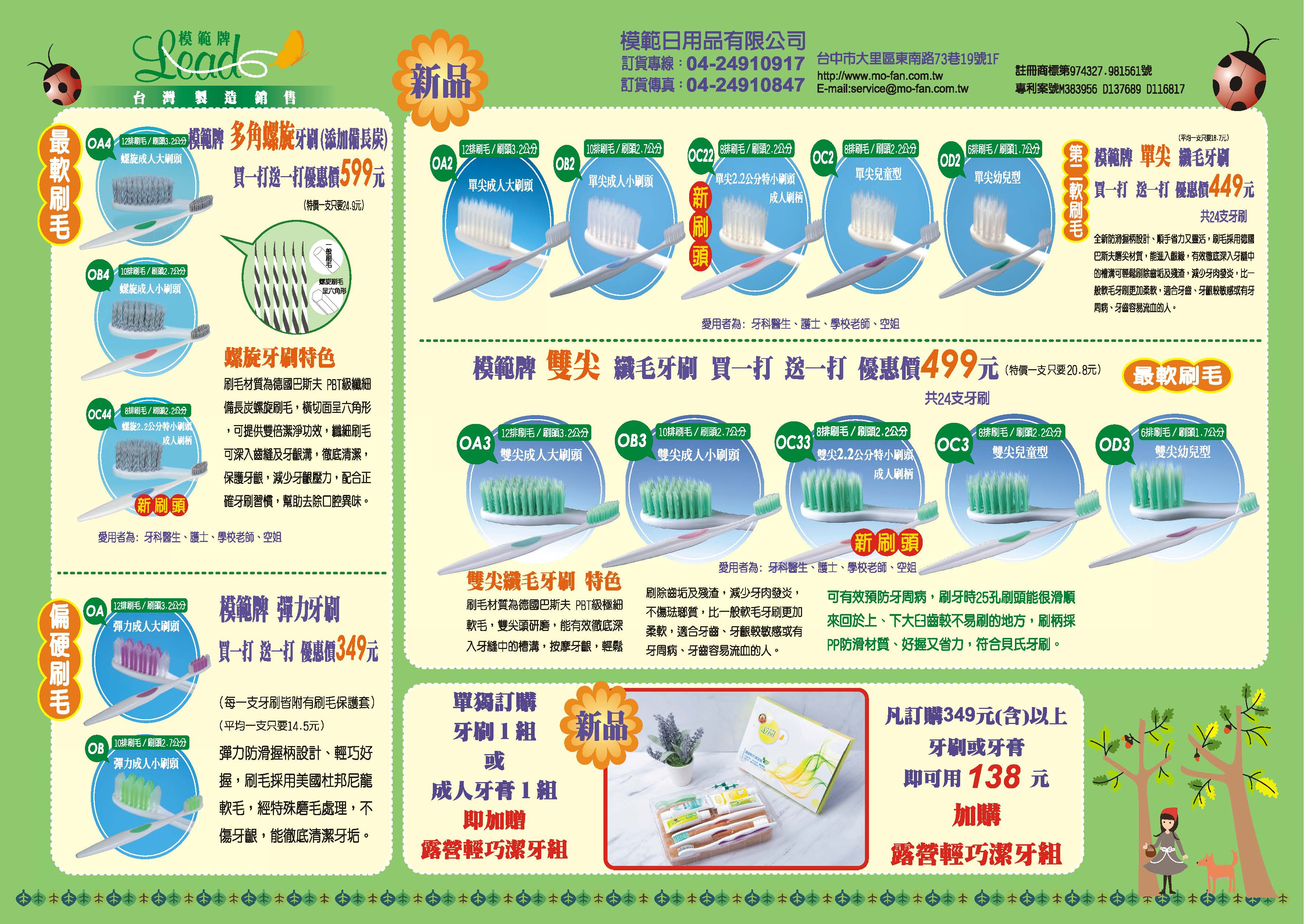一、合作社代訂台灣製造銷售-模範牌牙刷/膏口腔保健系列商品,如有要訂購同仁,請依附表格式填妥後至合作社登記一併繳款。