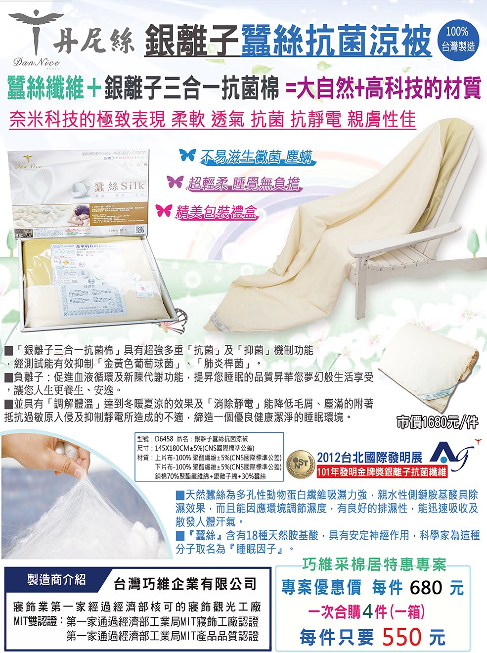 合作社代訂:丹尼絲銀離子蠶絲抗菌涼被