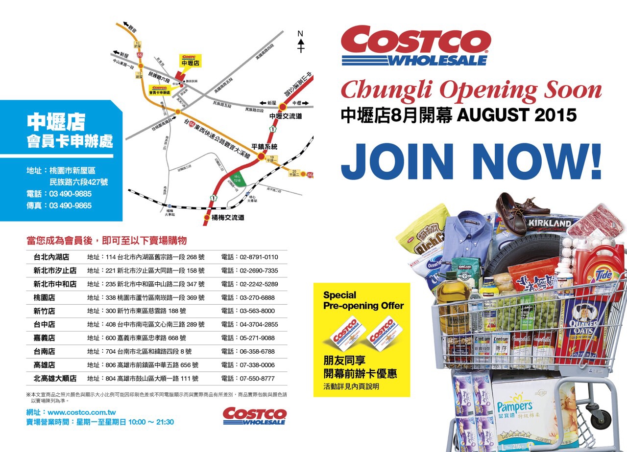 本所員工消費合作社臨櫃好市多於05/13(三)申辦中壢店辦卡優惠活動、賣場熱銷商品免費招待,詳如附件敬請參閱。