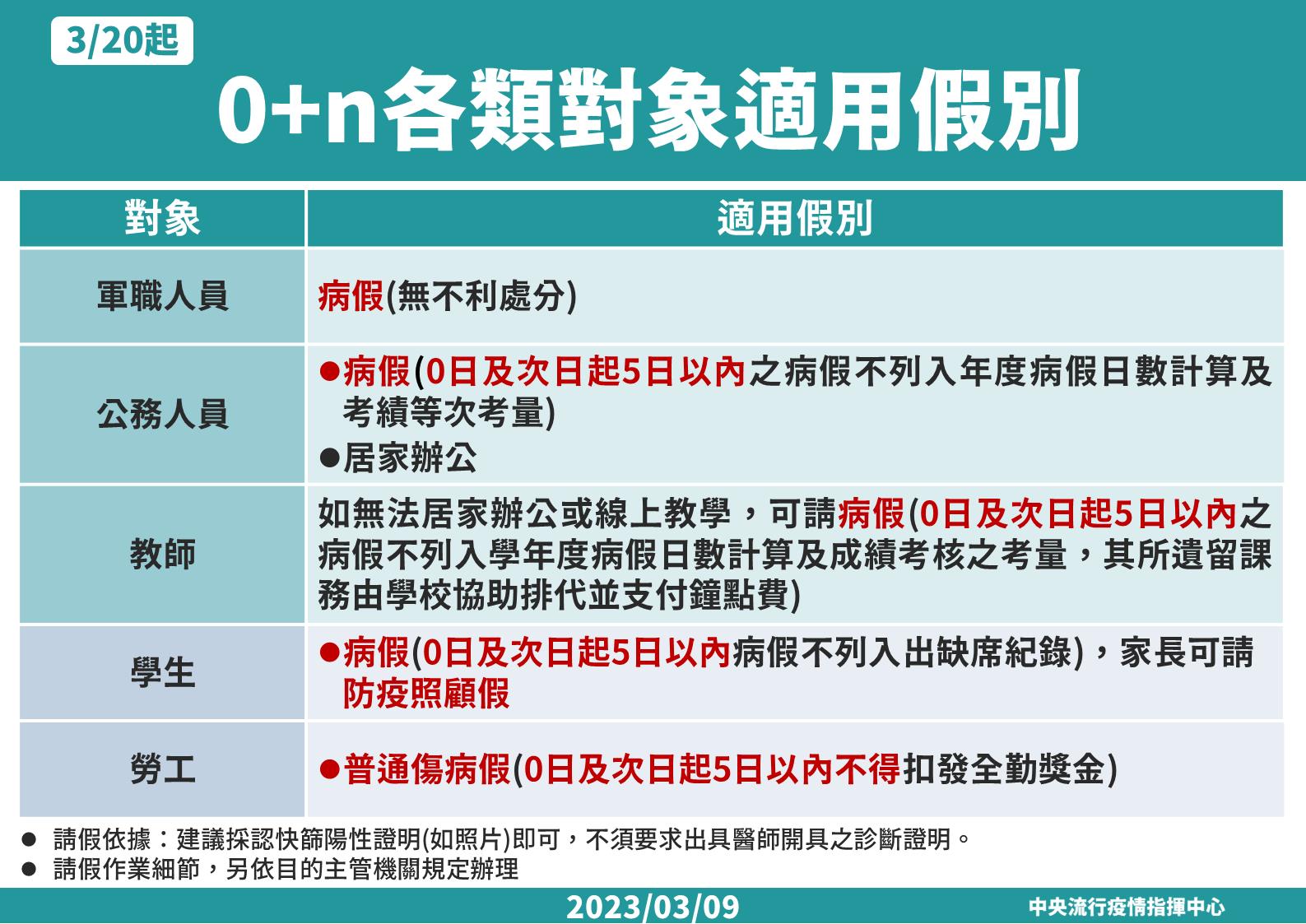 主旨: 自本(112)年3月20日起,快篩陽性同仁改採「0+n自主健康管理」,差假別請以「新冠病假」申請,請查照轉知。