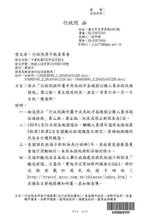 修正行政院與所屬中央及地方各機關公務人員休假改進措施第三點、第五點