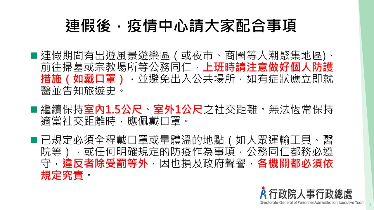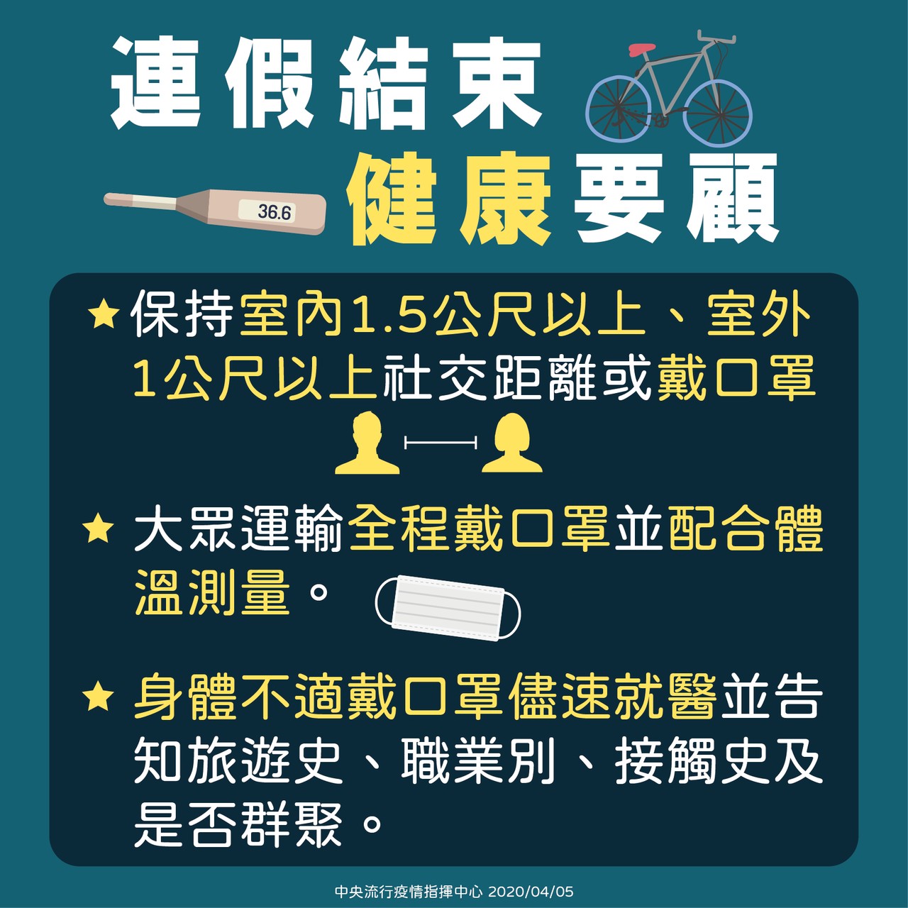 連假結束健康要顧宣導