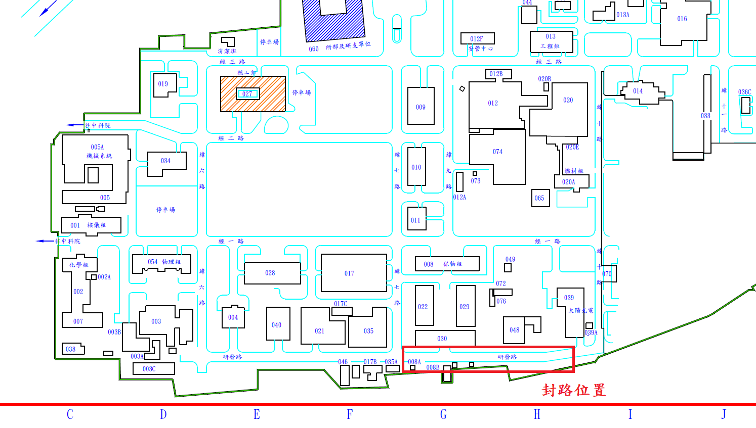 本專案將於114()進行風機吊裝作業,048館、030館周邊之研發路封路,進行交通管制,並放置警戒角錐,所內同仁請繞道通行,注意安全。