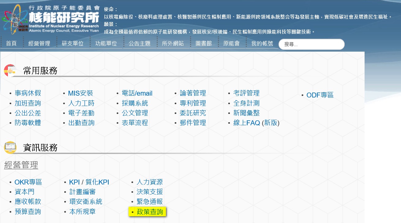 登錄路徑:所內首頁\更多服務\經營管理\政策查詢 (登入畫面請參考附件)