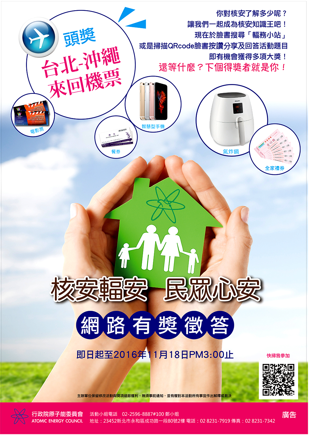 轉知原能會辦理「105年守護核安網路有獎徵答」活動海報
