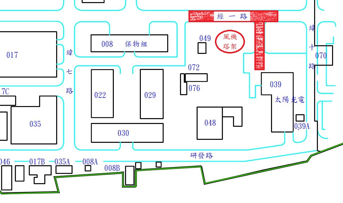 本專案將於12月11日(二)8:00-16:00進行風機吊裝作業,039、049館周邊之經一路封路,進行交通管制,並放置警戒角錐,所內同仁請繞道通行,注意安全。