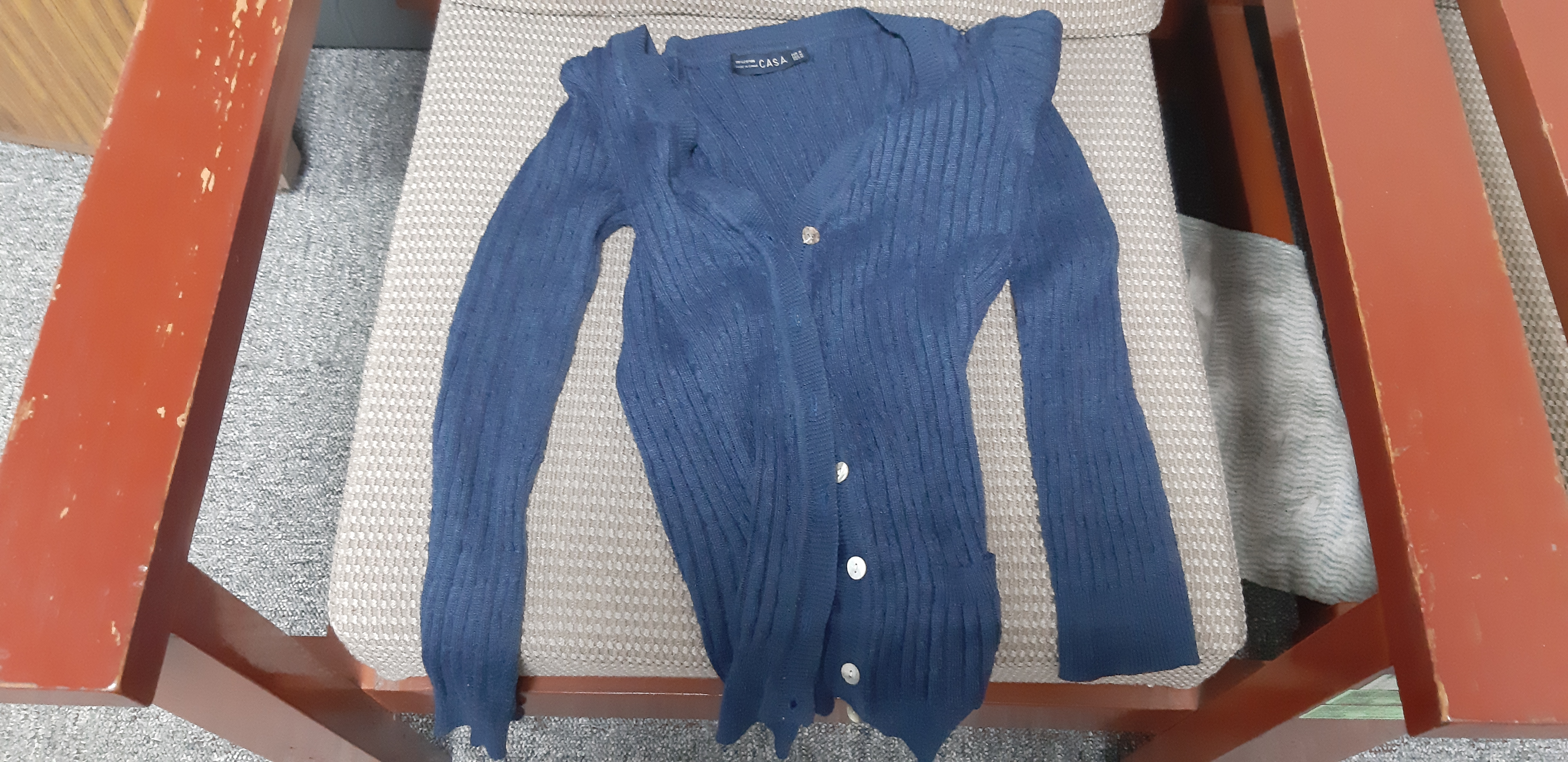 本所同仁於109年8月27日或28日,在本所005A館大門口旁會議室拾獲藍色毛衣1件(如照片),請遺失人至本所政風室領回。