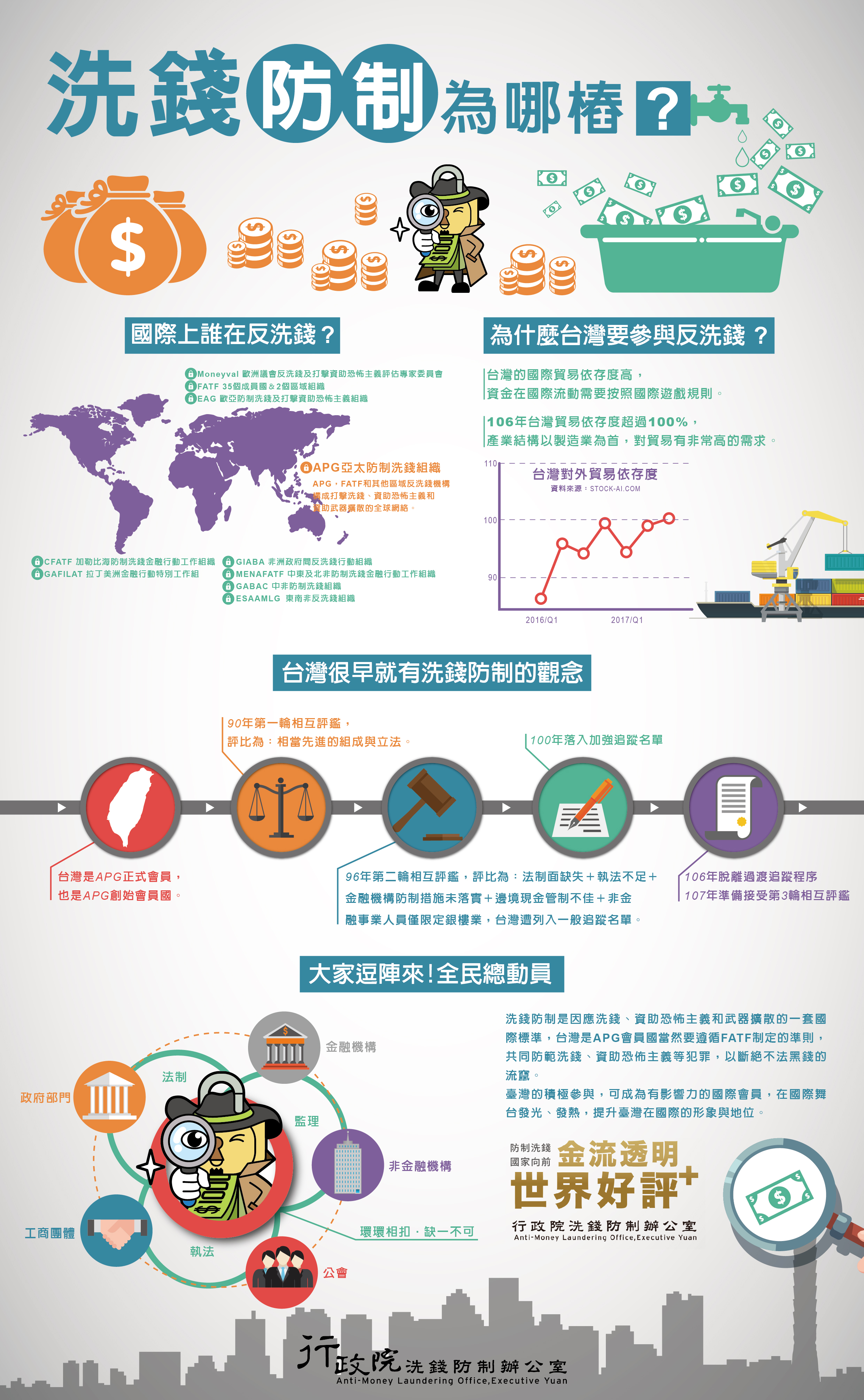 行政院洗錢防制辦公室因應107年亞太洗錢防制組織互相評鑑,持續執行全國性防制洗錢宣導工作,宣導文宣如下,請同仁多加運用: