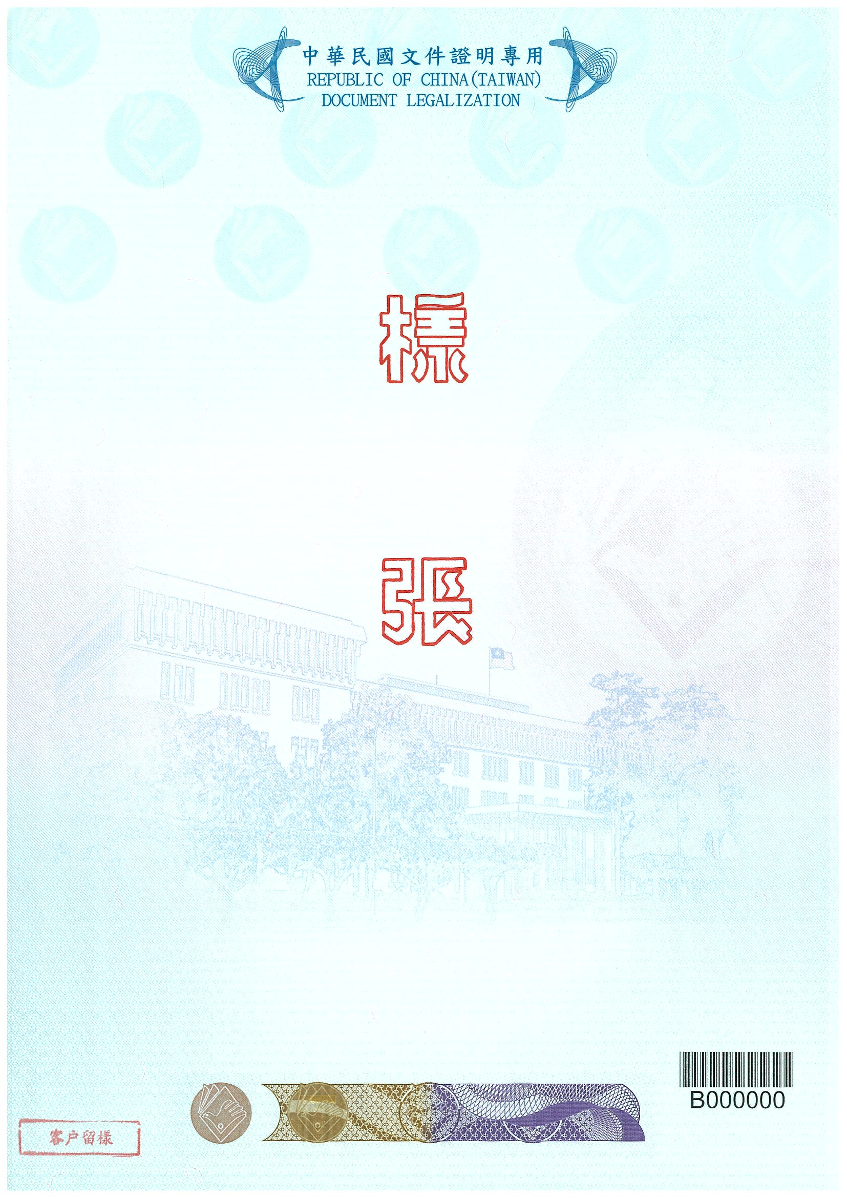 三、另檢附「中華民國文件證明書」樣張、防偽說明各乙份供參。